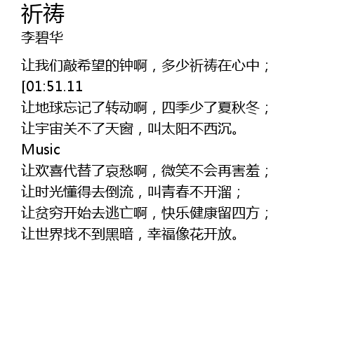 | [00:11.68] | ràng wǒ men qiāo xī wàng de zhōng a, duō shǎo qí dǎo zài xīn zhōng |