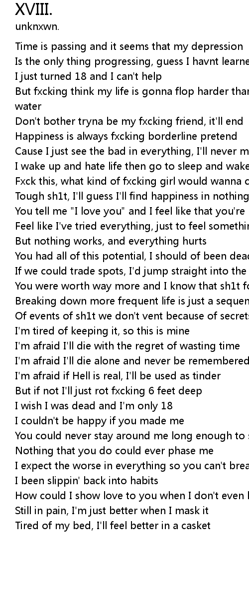 | [01:26.09] | I wish I was dead and I'm only 18 |