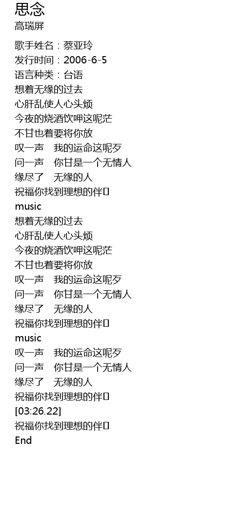 | [03:26.73] | 祝福你找到理想的伴� |