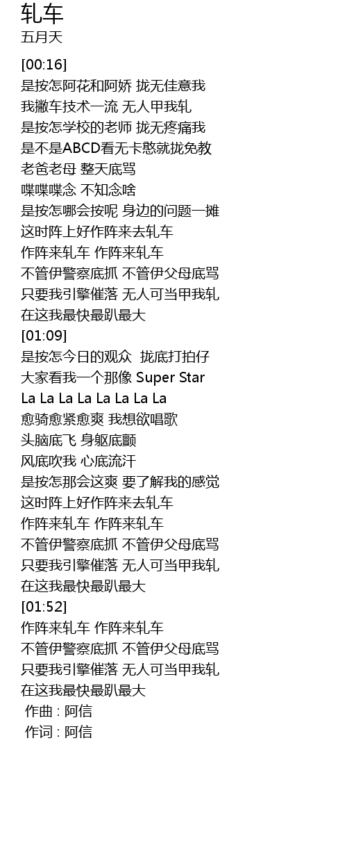 | [01:41] | 作阵来轧车 作阵来轧车 |