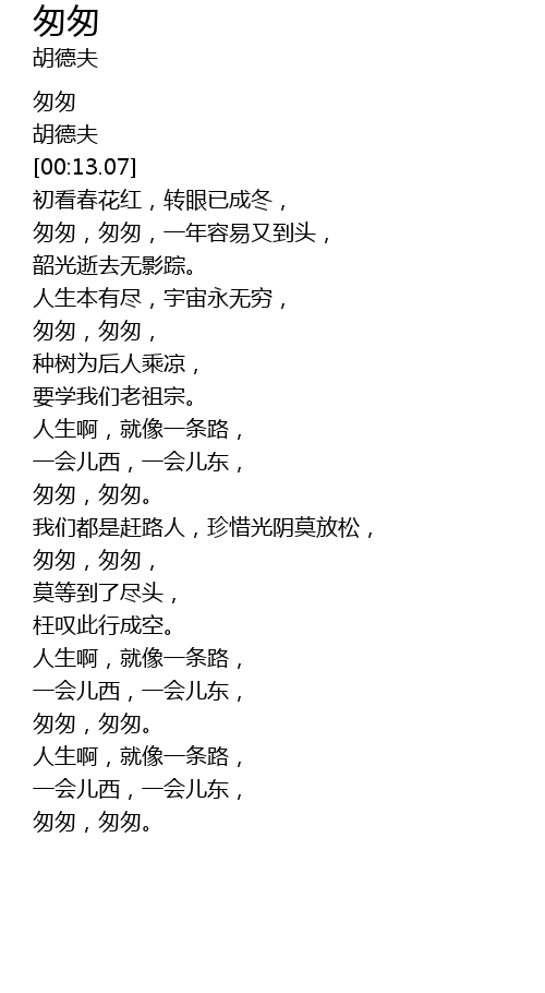 | [00:09.78] | 匆匆 |