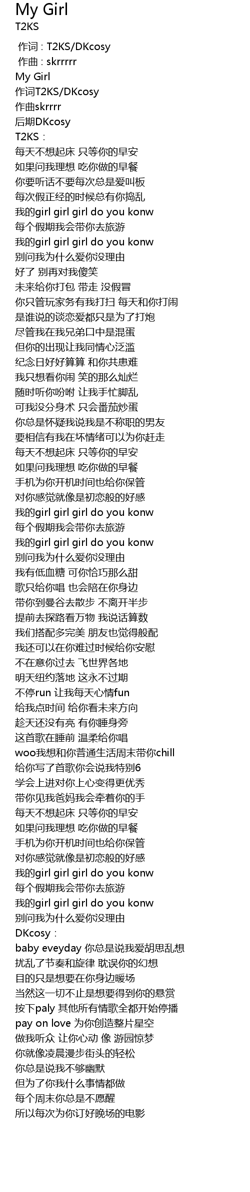 | [02:11.440] | wǒ de girl girl girl do you konw |