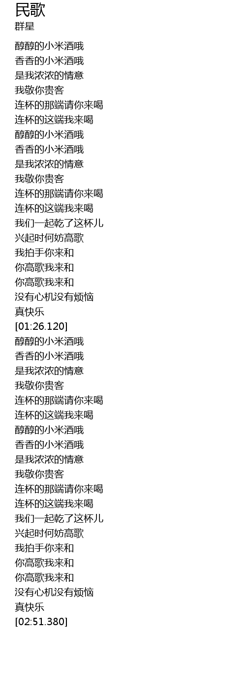 | [01:41.190] | 醇醇的小米酒哦 |