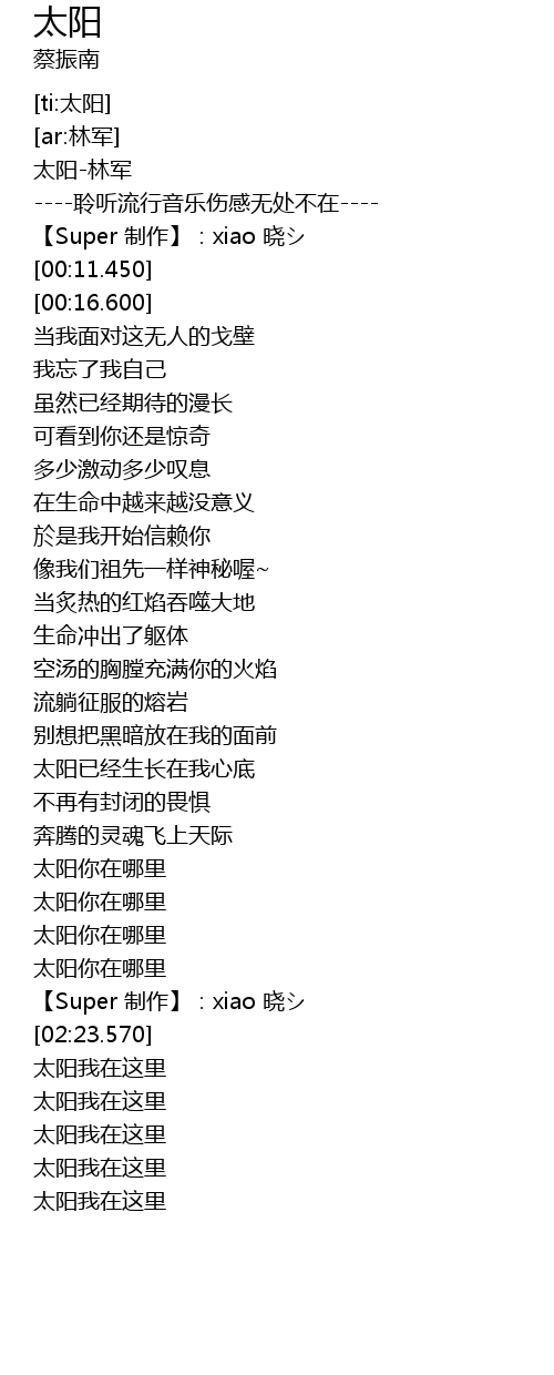 | [00:01.290] | 太阳-林军 |