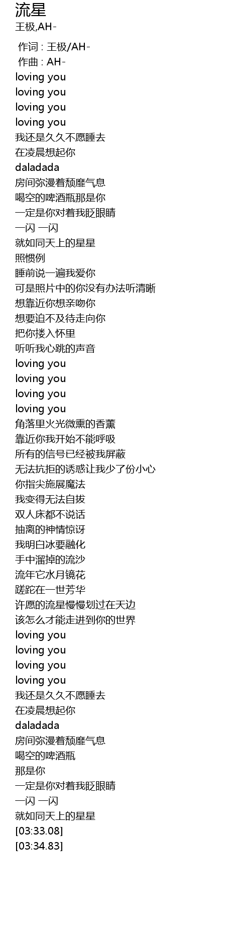 | [02:33.10] | 许愿的流星慢慢划过在天边 |