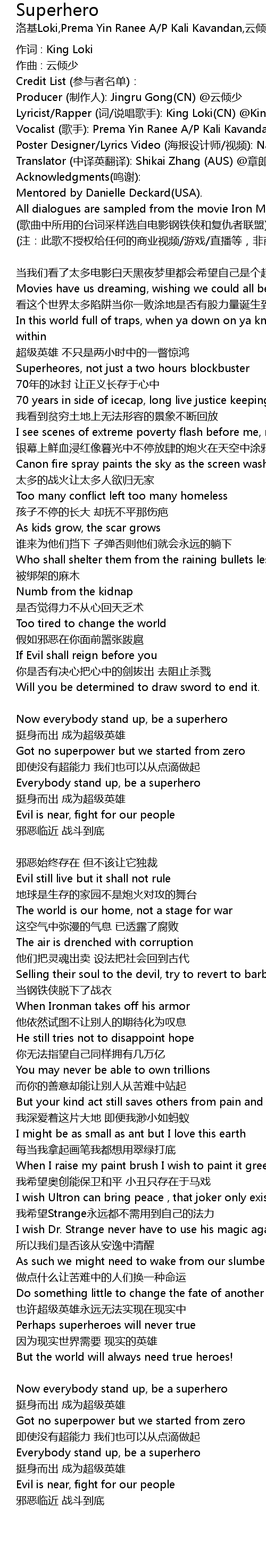 | 歌曲 | Superhero |