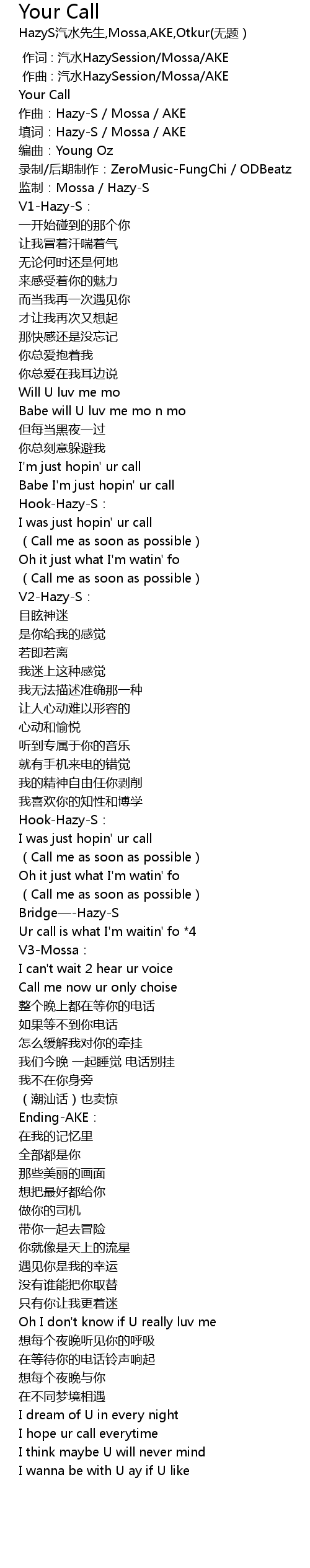 | [00:13.177] | 录制/后期制作:ZeroMusic-FungChi / ODBeatz |