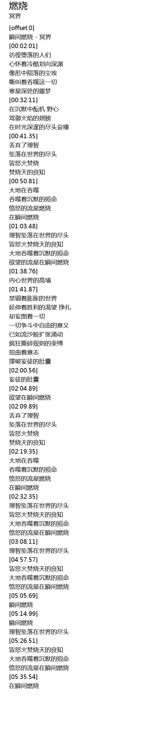 | [00:00.56] | 瞬间燃烧 - 冥界 |