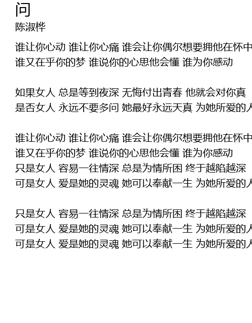 | 可是女人 爱是她的灵魂 她可以奉献一生 为她所爱的人 | |