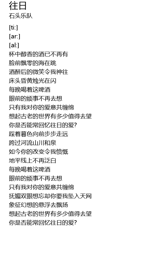 | [01:26.87] | nǐ shì fǒu néng cháng huí yì wǎng rì de ài? |