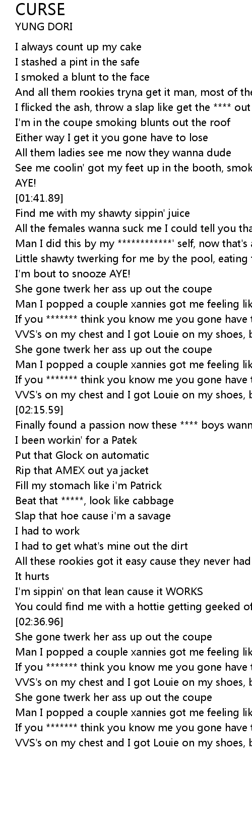 | [01:52.92] | She gone twerk her ass up out the coupe |