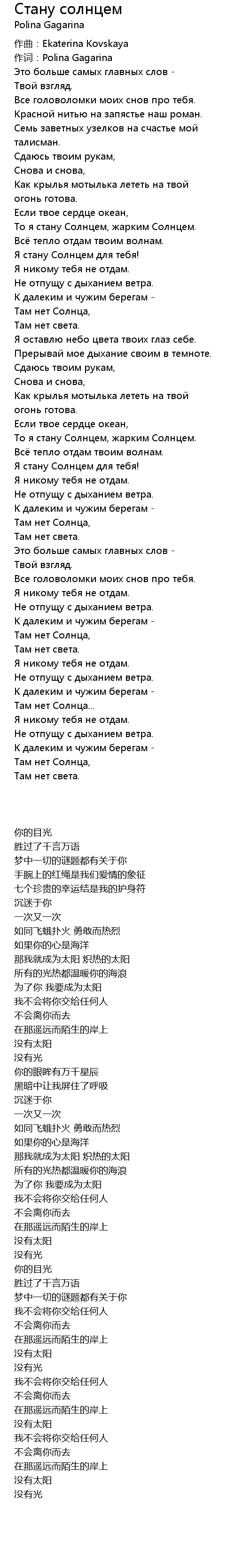 | [00:01.05] | 作词:Polina Gagarina |