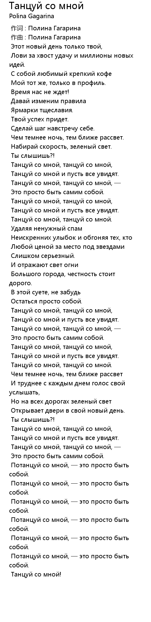 作词 : Полина Гагарина |