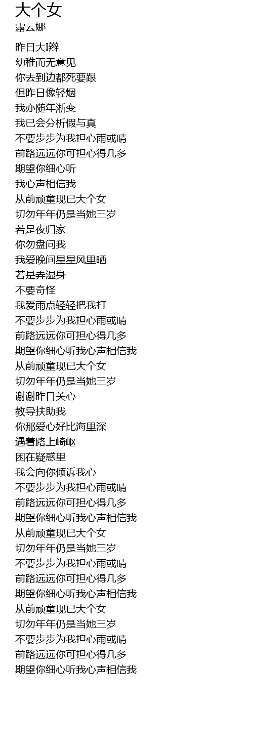 | [00:50.55] | 从前顽童现已大个女 |