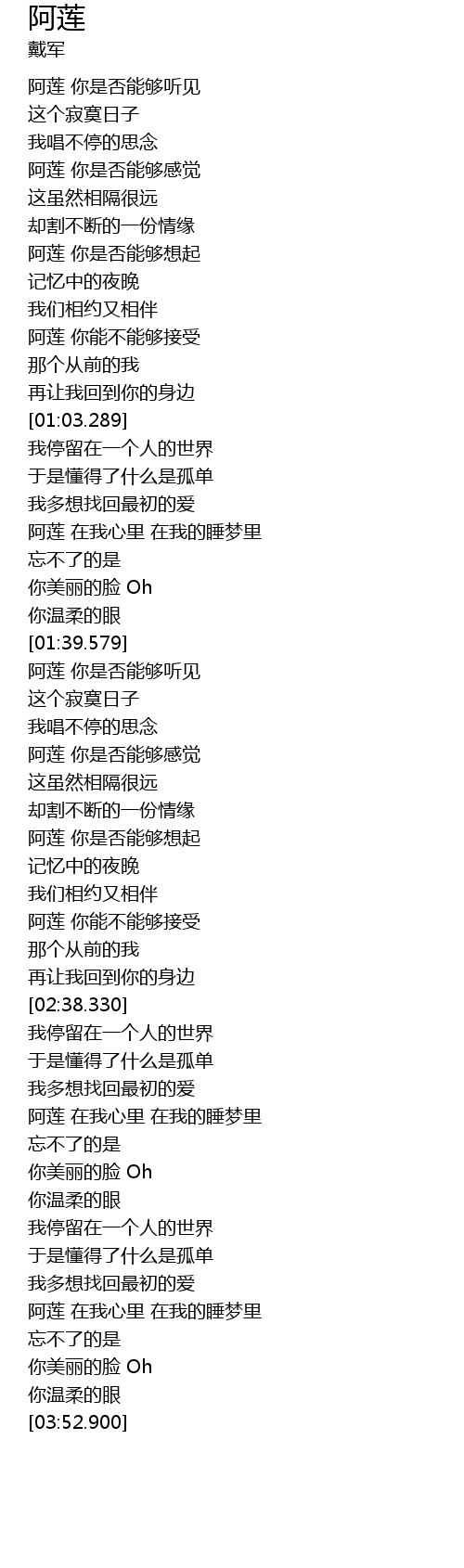 | [01:55.779] | 阿莲 你是否能够听见 |