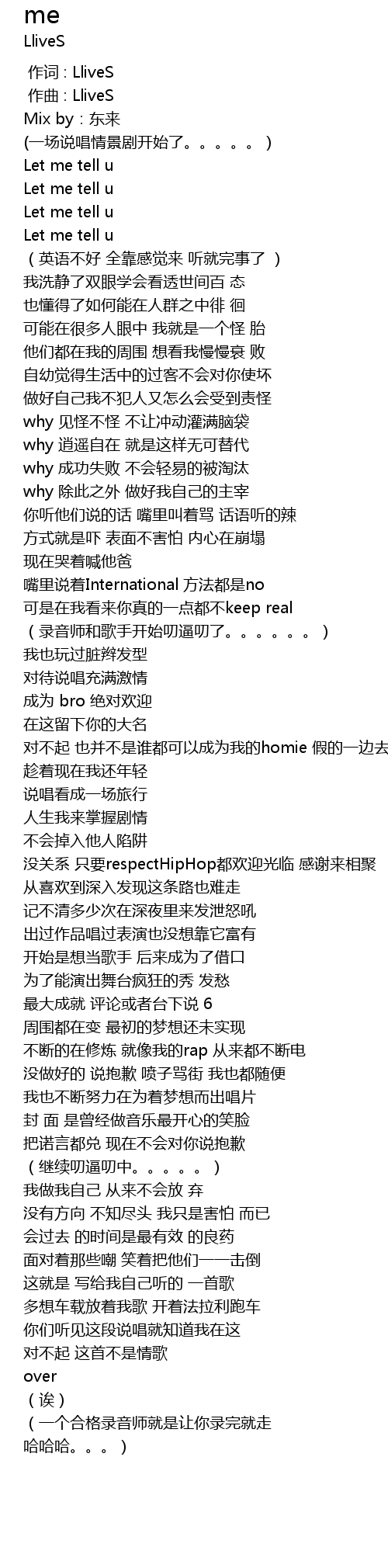 | [01:38.614] | 没关系 只要respectHipHop都欢迎光临 感谢来相聚 |