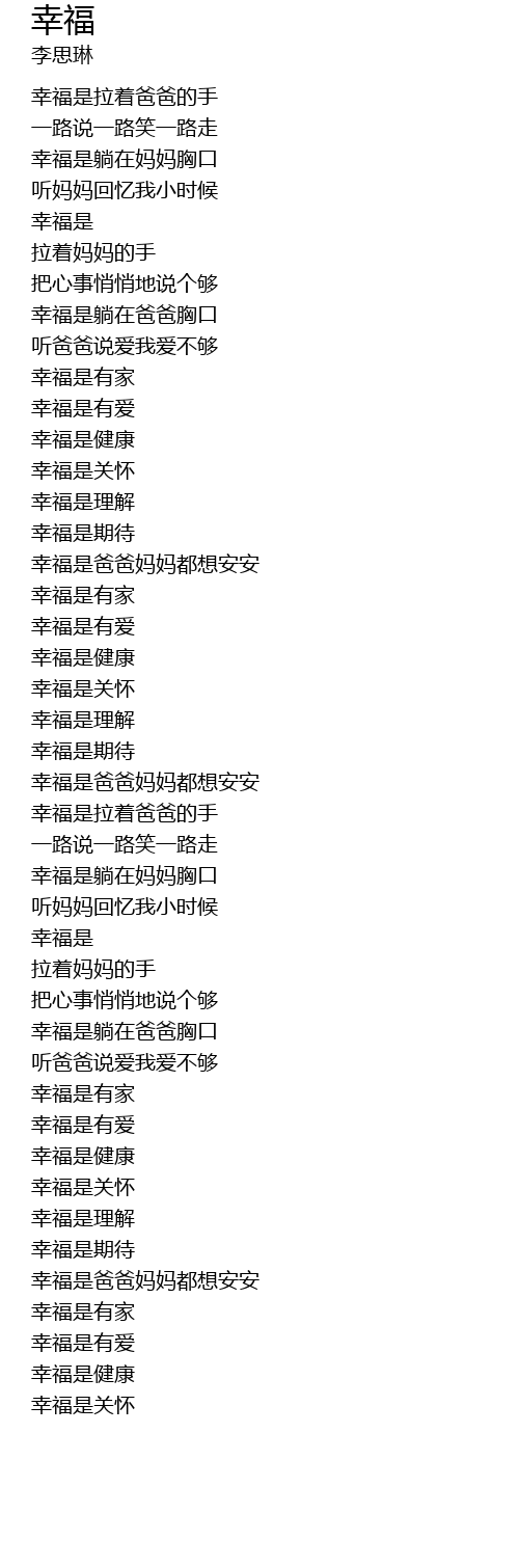 | [03:25.49] | xìng fú shì bà bà mā mā dōu xiǎng ān ān |