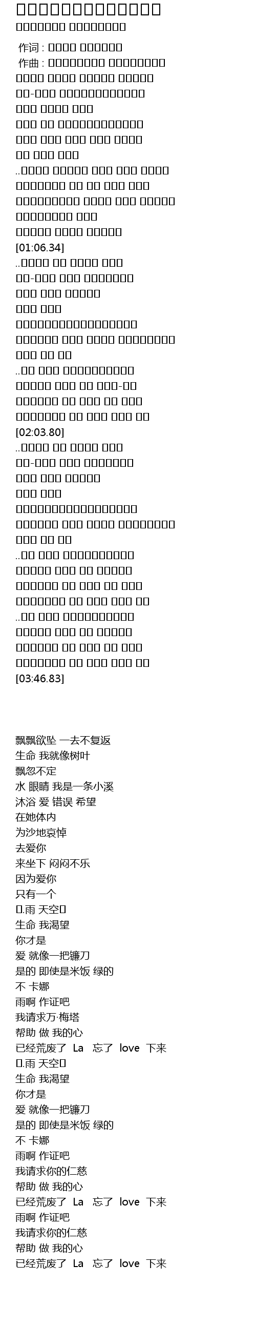 | [03:22.76] | 已经荒废了 La 忘了 love 下来 |
