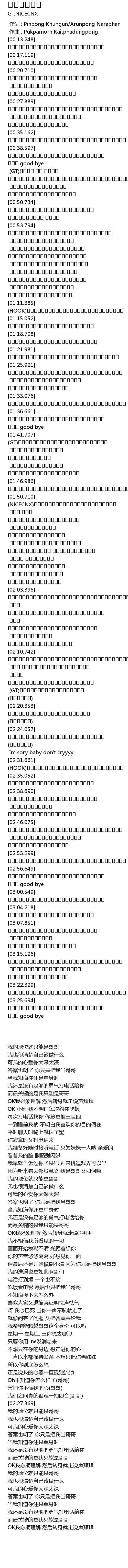 | [00:57.928] | พี่พร้อมรับสายทุกเวลา ให้น้องคนเดียวเลยกานดา |