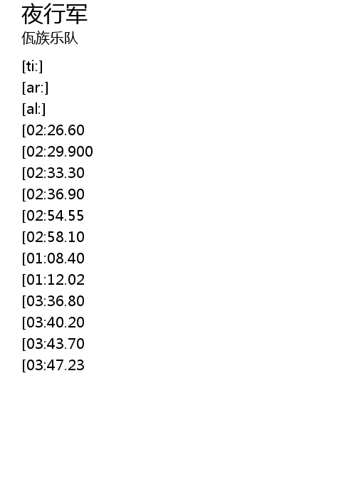 | [00:36.65][02:29.900] | 行装沉重没有战友并肩 |
