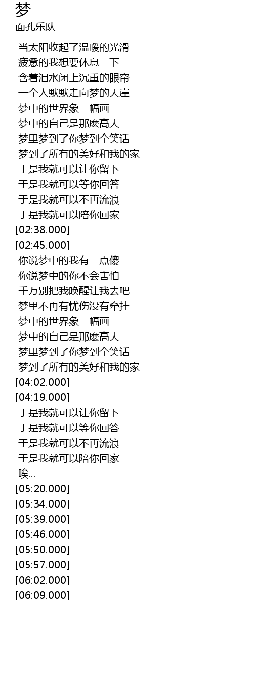 | [01:55.000] | 梦到了所有的美好和我的家 |