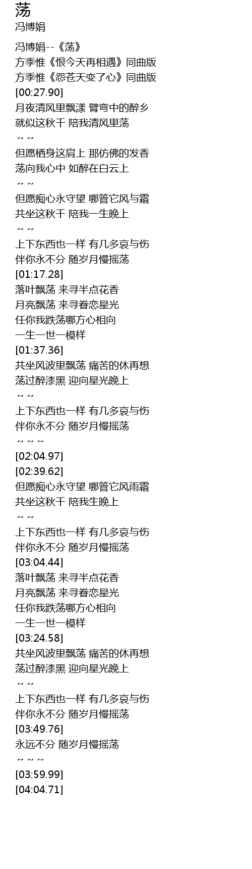 | [00:00.00] | 冯博娟--《荡》 |