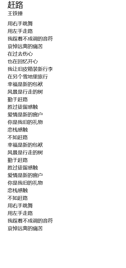 | [00:35.390] | 我让旧皮箱装新行李 |