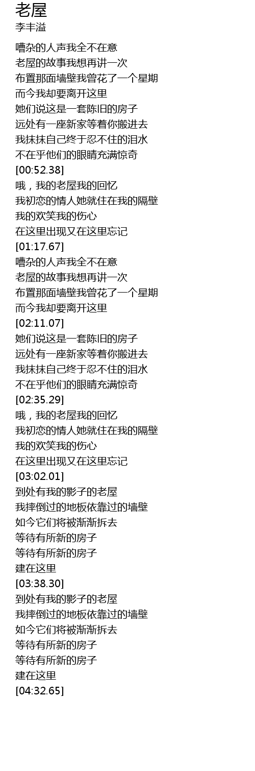 | [00:52.95] | 哦,我的老屋我的回忆 |