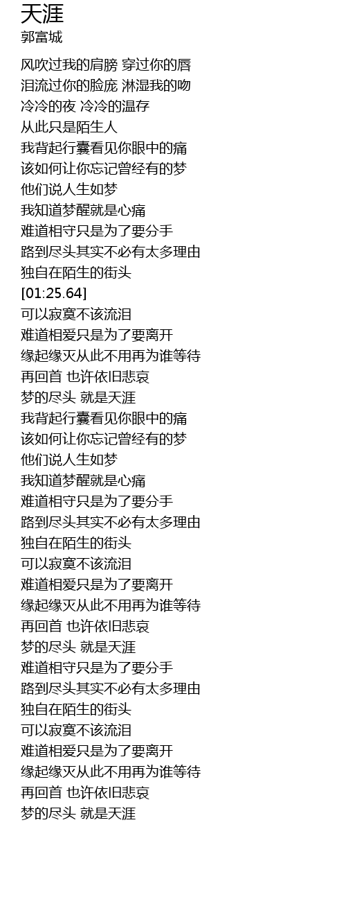 | [01:47.14] | 梦的尽头 就是天涯 |