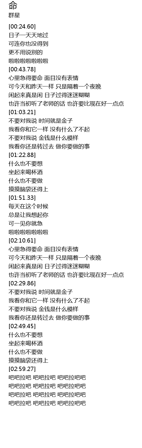 | [00:44.12] | 心里急得要命 面目没有表情 |
