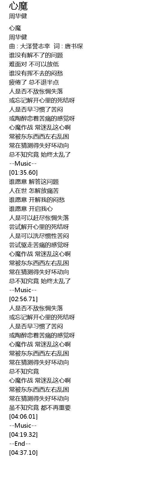 | [00:04.10] | 心魔 |