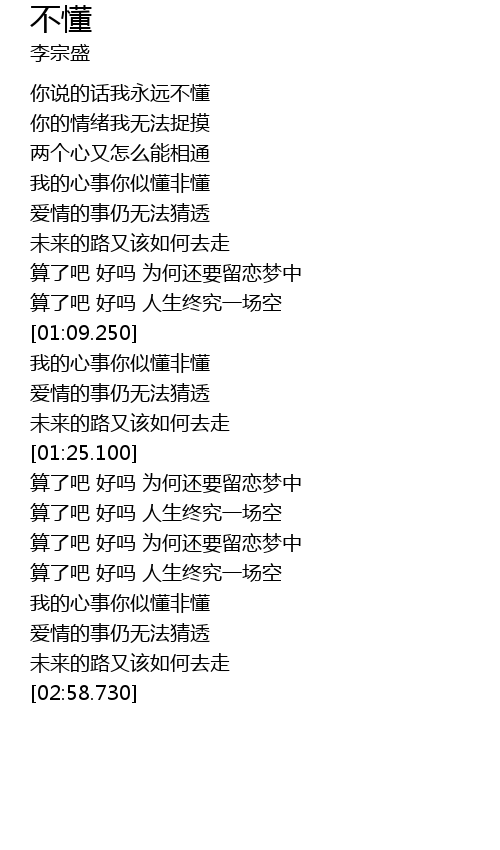 | 歌曲 | 不懂 |
