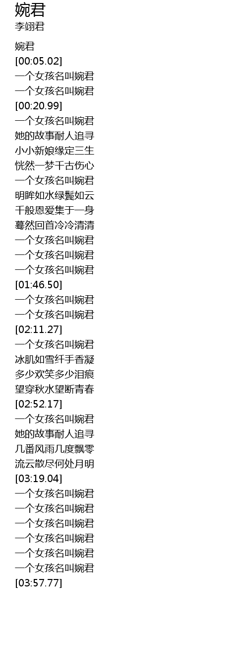 | [03:45.36] | 一个女孩名叫婉君 |