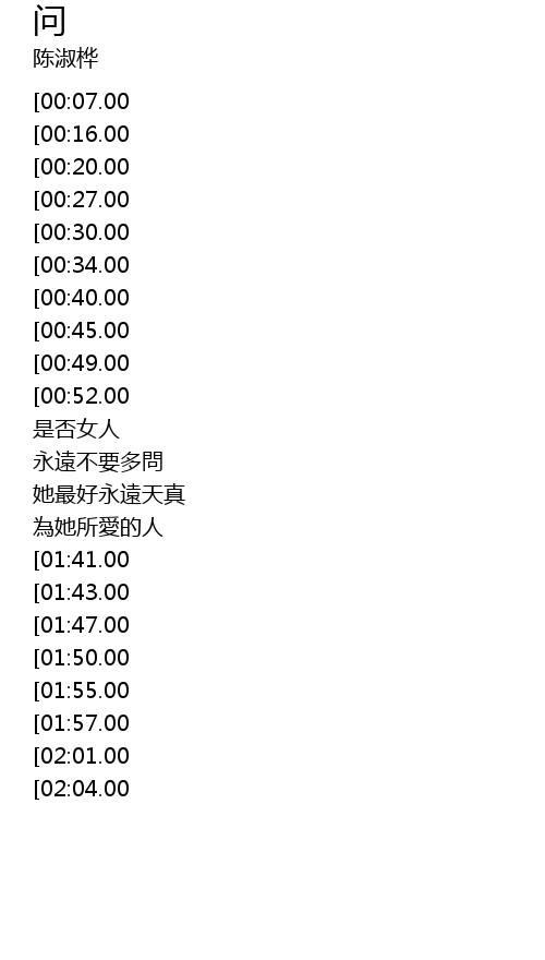 | [02:48.00][01:41.00] | zhǐ shì nǚ rén |