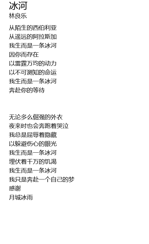 | wǒ shēng ér shì yī tiáo bīng hé | |
