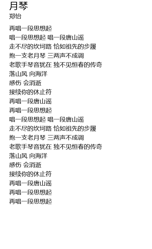 | [00:35.11] | 唱一段思想起 唱一段唐山谣 |