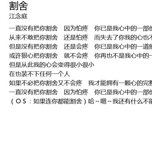| 从来不敢把你割舍 还是怕疼 而失去了你我的心也不完整 | |