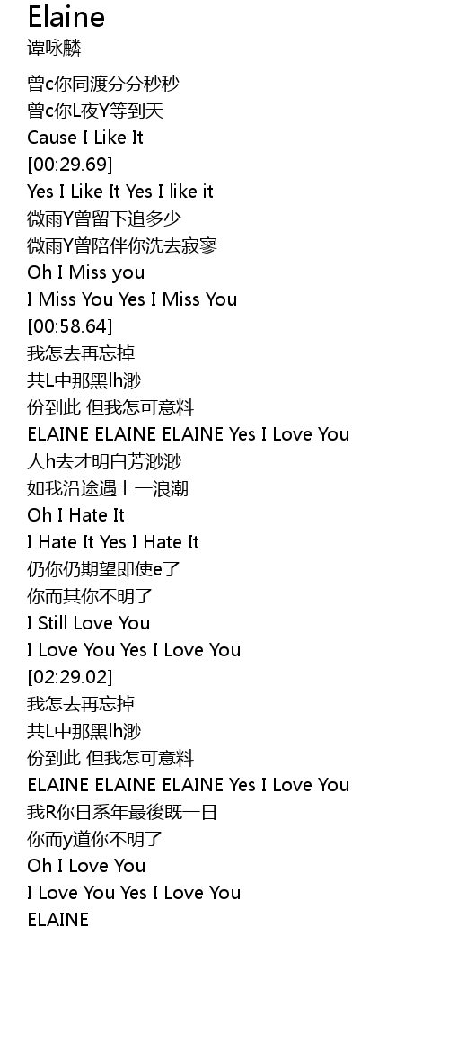 | [01:22.86] | ELAINE ELAINE ELAINE Yes I Love You |