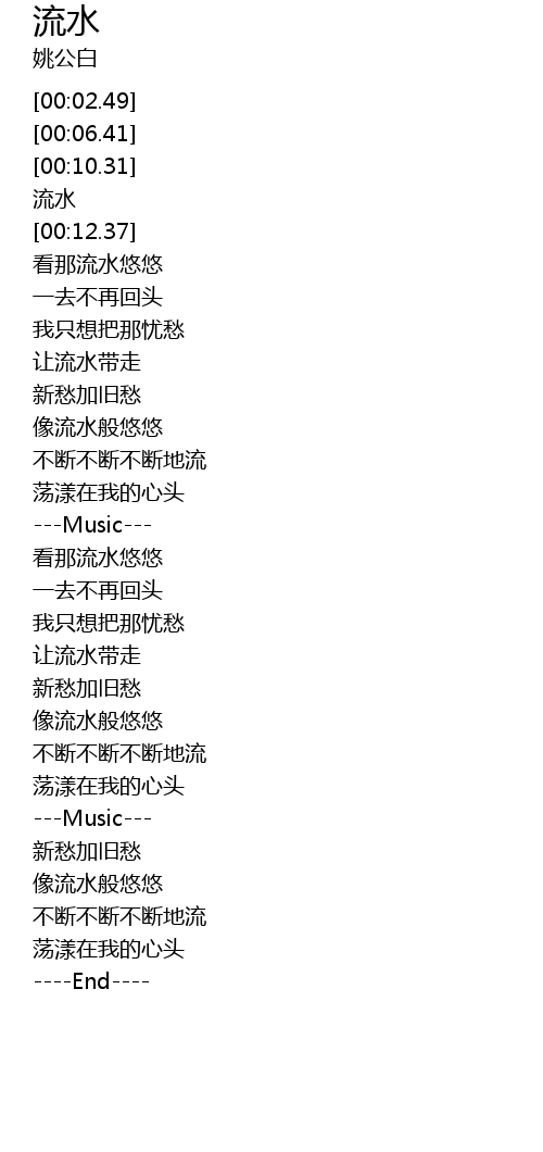 | [00:36.54] | ràng liú shuǐ dài zǒu |