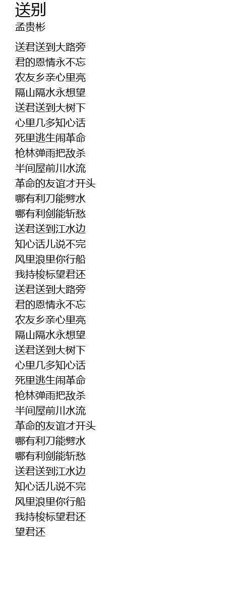 | [01:50.49] | sòng jūn sòng dào jiāng shuǐ biān |