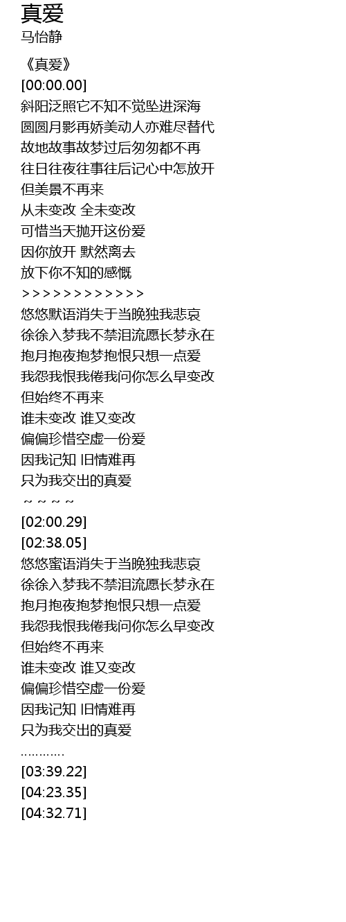 | [03:30.76] | 只为我交出的真爱 |