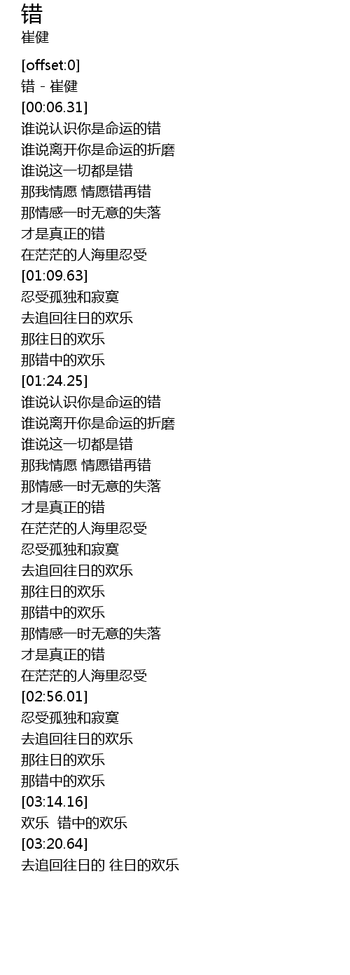 | [00:01.06] | 错 - 崔健 |