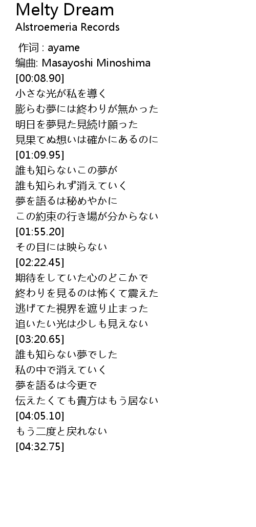 | [00:56.30] | 見果てぬ想いは確かにあるのに |