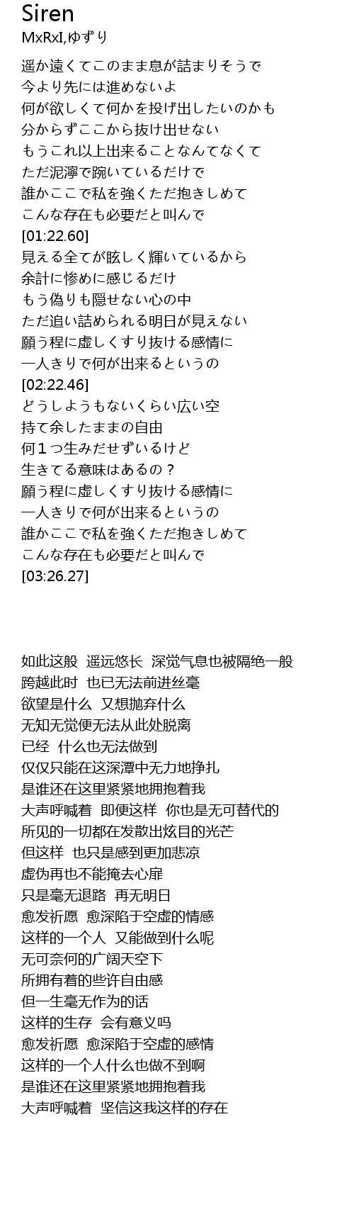 | [02:53.93] | 愈发祈愿 愈深陷于空虚的感情 |