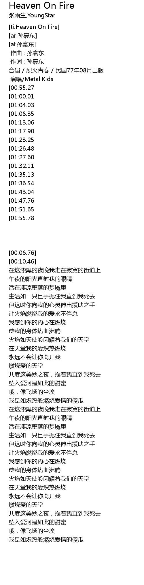 | [02:58.14] | 在天堂我的爱炽热燃烧 |