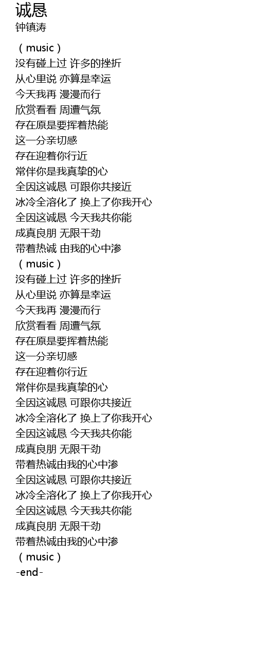 | 歌曲 | 诚恳 |