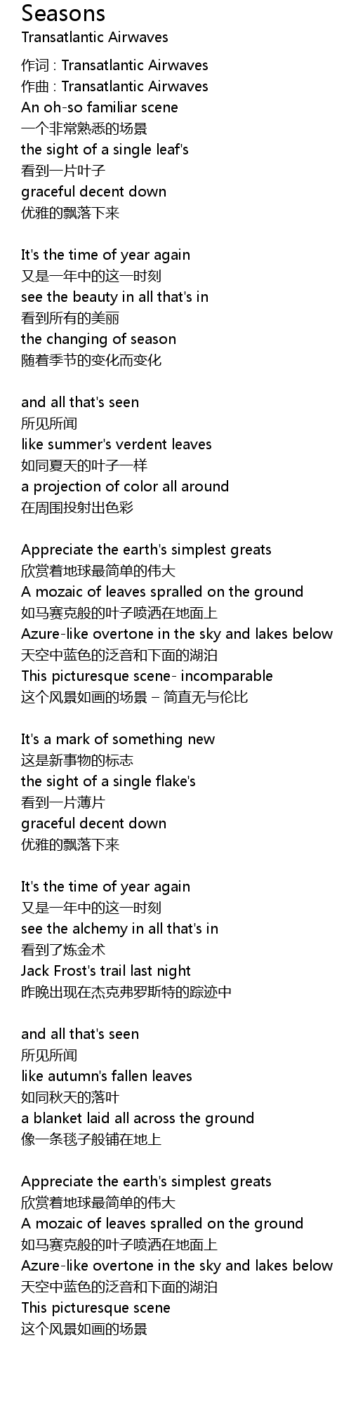| suí zhe jì jié de biàn huà ér biàn huà | |