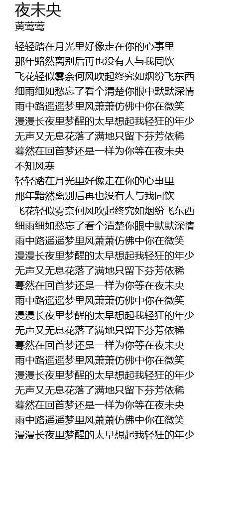 | [04:30] | 蓦然在回首梦还是一样为你等在夜未央 |