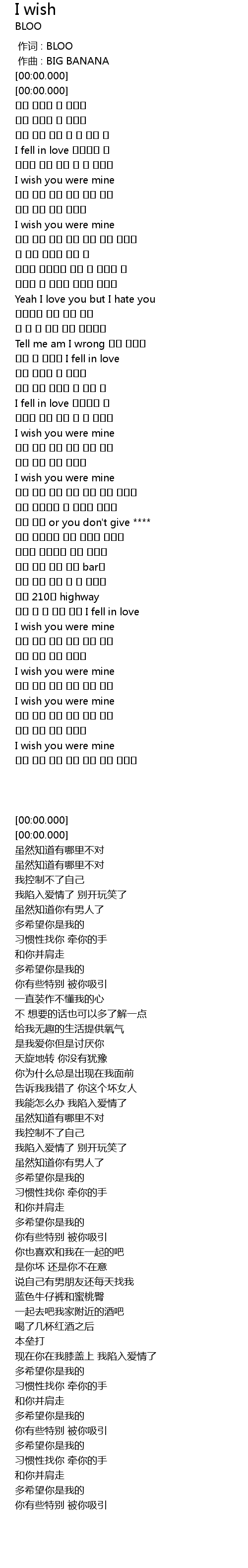 | [00:34.000] | I wish you were mine |