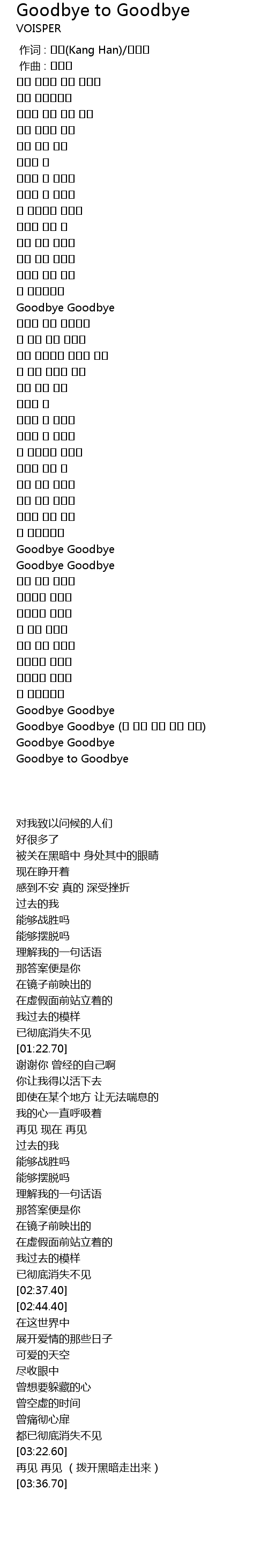 | [03:29.50] | Goodbye Goodbye (그 어둠 속을 헤쳐 나와) |